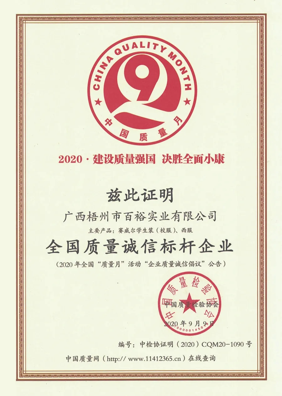 9月9日,百裕集團產(chǎn)品憑借卓越的產(chǎn)品質(zhì)量和生產(chǎn)技術(shù),贏(yíng)得中國質(zhì)量檢驗協(xié)會(huì )的認可,榮獲“全國百佳質(zhì)量檢驗誠信標桿企業(yè)”與“全國質(zhì)量誠信標桿企業(yè)”榮譽(yù)稱(chēng)號。