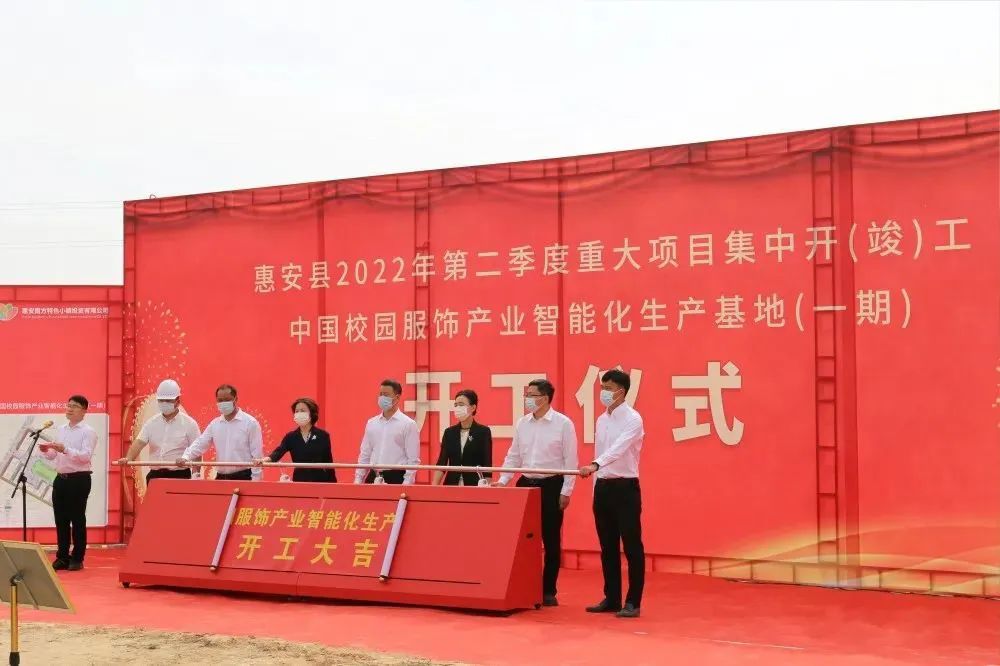 4月13日上午9時(shí)許,城南工業(yè)區(中國校園服飾產(chǎn)業(yè)基地)內,惠安縣隆重舉行中國校園服飾產(chǎn)業(yè)智能化生產(chǎn)基地一期項目開(kāi)工儀式。中共惠安縣委書(shū)記王春雷,縣政協(xié)主席許貞麗,縣委副書(shū)記黃麗瓊,縣委常委、常務(wù)副縣長(cháng)蔡旭萌、螺陽(yáng)鎮黨委王海演書(shū)記、鎮長(cháng)林少杰和項目業(yè)主代表辛景文等出席開(kāi)工儀式并共同為項目開(kāi)工推桿啟動(dòng)。副縣長(cháng)郭惠卿主持開(kāi)工儀式并介紹項目情況。