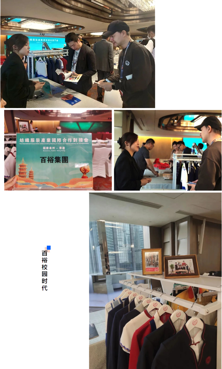 百裕校園時(shí)代精品服飾亮相紡織服裝產(chǎn)業(yè)國際合作對接會(huì )會(huì )場(chǎng),百裕校園時(shí)代校園服飾以“科技創(chuàng )新、著(zhù)裝育人、呵護明天、文化傳承”為品牌理念;此次展示的精品服飾融入了民族文化元素,科技面料及工藝、時(shí)尚流行元素等,向參觀(guān)者展示了校園服飾的獨特魅力,不斷吸引了眾多參觀(guān)者駐足與關(guān)注。受到廣大觀(guān)眾的與閩港兩地的政商代表們進(jìn)行深入交流,攜手探索紡織產(chǎn)業(yè)的新格局、新生態(tài),攜手合作共謀發(fā)展。