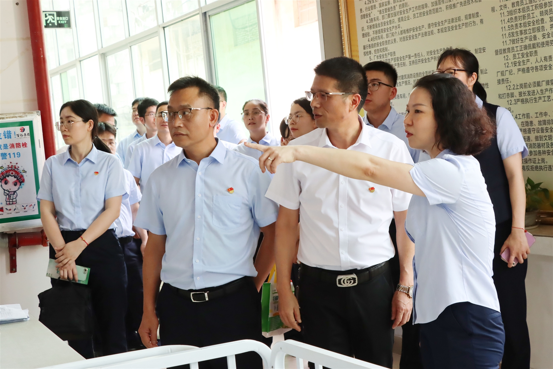 在曾晏來(lái)總經(jīng)理的帶領(lǐng)下,岑溪農商行的黨員及青年員工代表參觀(guān)了百裕集團的黨建文化長(cháng)廊、黨建文化館、優(yōu)秀班組的生產(chǎn)線(xiàn)以及校服文化展廳,深入了解百裕集團在積極發(fā)揮黨建引領(lǐng)的核心作用力,
