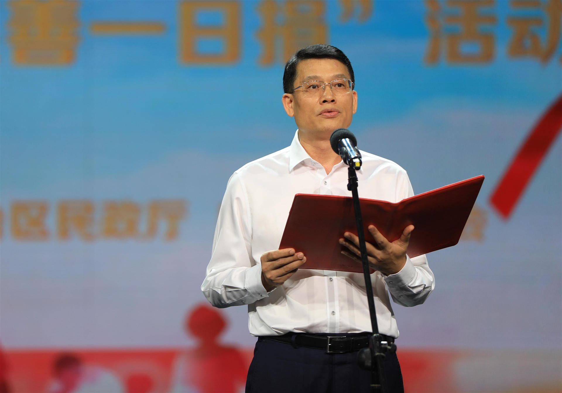 廣西慈善總會(huì )會(huì )長(cháng)、自治區政協(xié)第十一、十二屆原副主席劉正東宣讀慈善倡議書(shū)