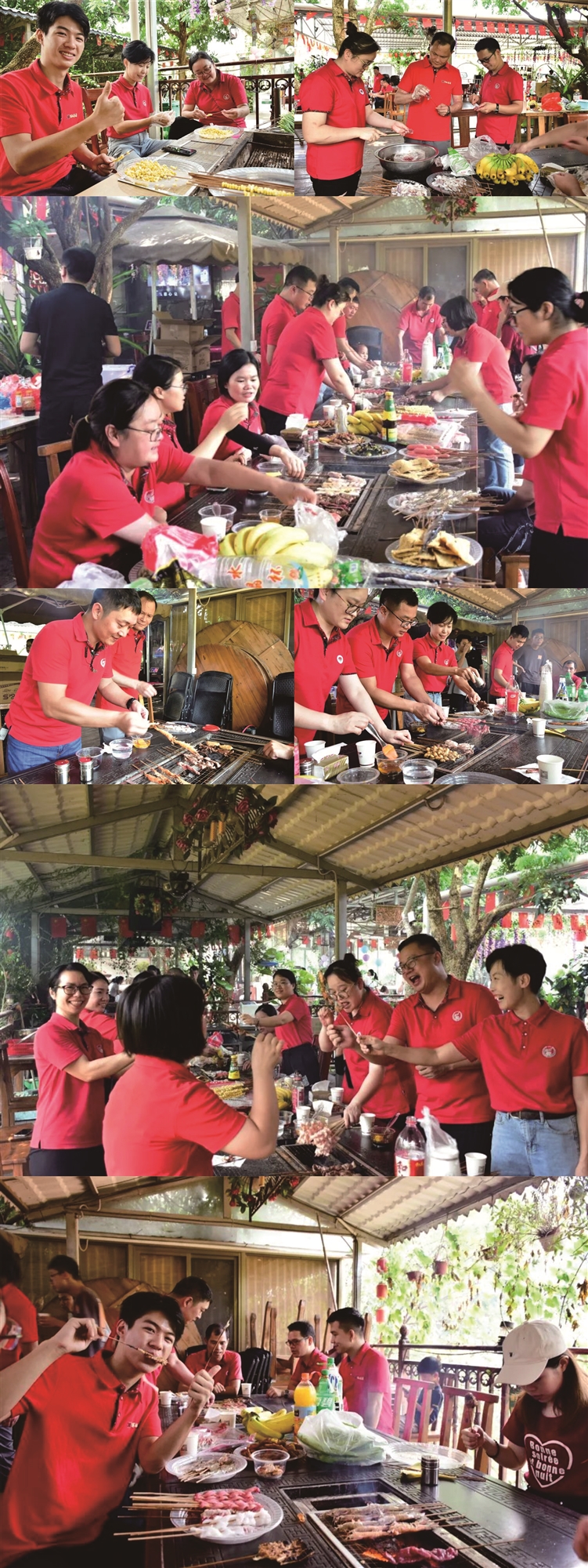 活動(dòng)在農莊開(kāi)展,公司提前給員工準備了酸辣的鳳爪,爽脆的青瓜,涼拌木耳等,都引誘著(zhù)同事們饑腸轆轆的胃,讓人垂涎。在燒烤過(guò)程中員工們互相配合洗菜、串肉、生火、加炭,場(chǎng)面好不熱鬧。大家都拿出了“十八般武藝”,充分展示出自己的動(dòng)手能力和美食鑒賞能力,在制作和分享美味的過(guò)程中,每個(gè)人笑容滿(mǎn)面,洋溢著(zhù)喜悅的氣氛。