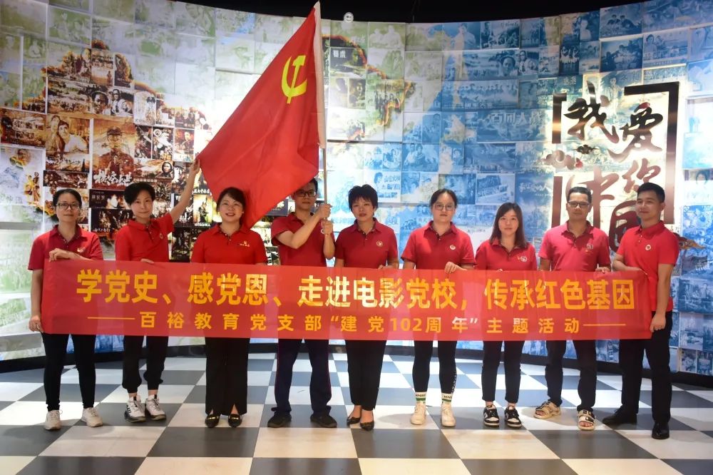 百年風(fēng)雨紅旗更艷,萬(wàn)里江天歲月如歌。為慶祝中國共產(chǎn)黨建黨102周年,進(jìn)一步強化黨員的身份及責任意識,充分發(fā)揮基層黨組織的戰斗堡壘作用,激發(fā)黨員的責任感與使命感,在七一建黨節來(lái)臨之際,6月28日下午,百裕教育黨支部書(shū)記曾凱蘭組織帶領(lǐng)公司黨員職工在南寧經(jīng)濟技術(shù)開(kāi)發(fā)區兩新領(lǐng)域電影黨校開(kāi)展“學(xué)黨史、感黨恩、走進(jìn)電影黨校,傳承紅色基因”建黨102周年主題活動(dòng)。