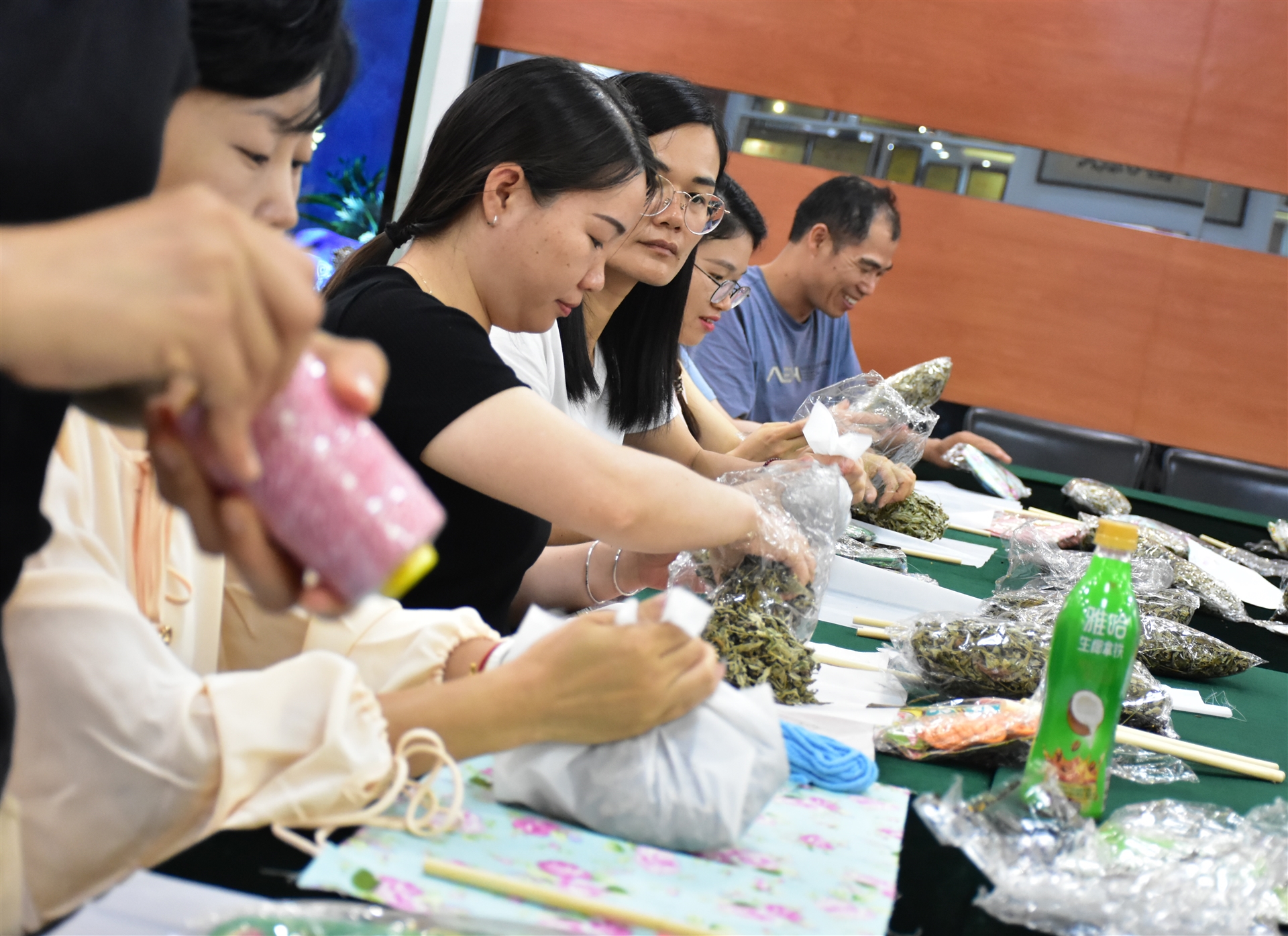 每位員工都認真挑選艾草,細心纏繞五彩線(xiàn),精心固定小錘子。制作過(guò)程中,大家互相交流心得,分享技巧,現場(chǎng)洋溢著(zhù)歡聲笑語(yǔ)。
