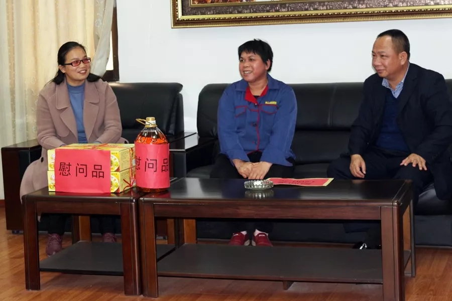企業(yè)的發(fā)展離不開(kāi)基層職工的辛勤付出,同月29日,廣西梧州市百裕實(shí)業(yè)有限公司常務(wù)副總經(jīng)理謝移植、岑溪生產(chǎn)廠(chǎng)廠(chǎng)長(cháng)王平志一行先后走訪(fǎng)黃旭群等困難職工,為職工們送去春節禮品,并轉達了公司對職工的深切問(wèn)候和美好祝福。
